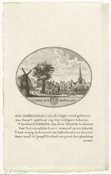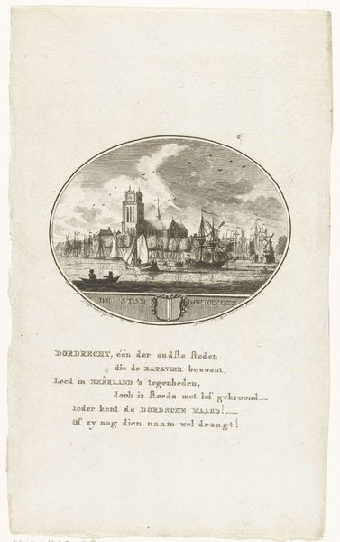 Anna Catharina Brouwer created this print of Gezicht op het dorp Puttershoek. Captured within an oval frame, the composition invites us to consider the structures and relationships between space, form, and meaning. Notice the meticulous lines that define the village, with the church steeple serving as a vertical anchor, mirrored by the masts of the boats. The use of the oval frame contains and organizes the composition into distinct sections. The architecture lines the waterfront and offers a sense of stability, while the sky is filled with light cloud forms. Consider how the formal elements are signs within a cultural and historical context, which challenge our ideas about Dutch rural life, local identity and place. These formal qualities make it possible to see how the image functions not just aesthetically, but as part of a larger cultural discourse that reflects Brouwer's way of seeing and organizing the world.