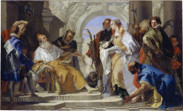 Sebastiano Conca painted ‘Alexander the Great in the Temple of Jerusalem’ in the 18th century, likely using oil paints on canvas. The material qualities of oil paint – its viscosity, the capacity for layering, and the luminosity of its pigments – allow for dramatic visual effects. The work appears effortlessly produced. But this belies the labor involved, not only in the artist's execution, but in the procurement and preparation of materials. Pigments would have been derived from various sources, some precious and rare, reflecting global trade networks even then. The canvas itself, likely linen, required cultivation, weaving, and stretching. All this before Conca even picked up a brush. The painting also speaks to the economy of art in the 1700s, its commission reflecting wealth and patronage, the very basis for an artist's studio and production. So while we admire the finished image, we should also consider the vast web of materials, processes, and social relations that made it possible. Recognizing this context allows us to appreciate this painting beyond the purely aesthetic.