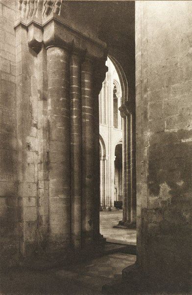 Frederick H. Evans created "York Minster, North Transept: "In Sure and Certain Hope"," a platinum print, sometime during his career. The print presents us with a composition that's remarkably structured around the play of light and shadow within the cathedral's architecture. Notice how Evans uses the strong vertical lines of the columns and arches to create a sense of depth, pulling us into the image. The geometric patterns of the window, combined with the soft gradations of light, establish a visual rhythm. This rhythmic quality is not just aesthetically pleasing; it engages with the Victorian interest in spiritualism and the sublime, using architectural space to evoke a sense of the eternal. Evans’s manipulation of light, a key element of photography, emphasizes the cathedral as a structure of both physical and metaphysical weight. In viewing this, one might consider how Evans uses the formal qualities of photography to explore themes of faith, time, and the sublime.