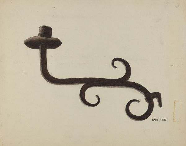 Gordena Jackson made this drawing of a hand-wrought iron candlestick, we don't know when, but look at the way she's approached it. It’s like a dance between observation and imagination, a real process. The surface is matte, and the color palette is tonal, almost monochromatic. The texture of the iron is captured with a deft hand, those curls and twists rendered with such care. It's not just about depicting an object; it's about feeling its weight, its history. Notice how Jackson handles the light, creating a sense of depth and volume. There’s a particular mark, that little spur at the left end, which seems to hold the whole thing together, like a tiny keystone. It reminds me of some of the drawings of everyday objects made by Giotto, where simplicity becomes profound. There's a conversation happening across time, a reminder that art is always evolving, always open to interpretation.