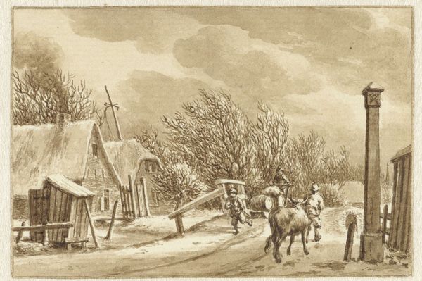 Editor: So, we’re looking at "Winterlandschap" by Caspar Jacobsz. Philips, an engraving from 1766, currently at the Rijksmuseum. It's a charming scene, but also a little…bleak? Everyone’s skating on the ice, but there’s also this strong sense of harsh winter life. What strikes you about it? Curator: The most fascinating thing about genre scenes like this is understanding the socio-political context in which they thrived. This isn't just a quaint picture of people enjoying winter; it's a carefully constructed image reinforcing certain social structures. Editor: Social structures? How so? Curator: Look at who’s engaging in leisure. Is it a picture of the aristocracy at play, or something different? Note the architecture, the clothing of the figures – these all tell us about class and access to resources. How would this image have been received by different audiences in 1766? Did it serve to romanticize rural life for an urban elite? Editor: I hadn't considered that! The people seem fairly ordinary, maybe even a little worse for wear, as are the houses. So the scene is being “sold” to a wealthier audience, maybe? Curator: Precisely. Prints like these were widely circulated, becoming a form of visual propaganda, if you will. They presented a specific vision of Dutch life, which museums like the Rijksmuseum have historically re-emphasized. Who chooses which image to collect and display has bearing on what narrative gets propelled forward. Editor: That’s fascinating. It changes how I see the entire piece, knowing there’s a potentially loaded message behind the pretty picture. Thanks for sharing. Curator: Absolutely, it shows how deeply art is intertwined with society's own projections and assumptions.