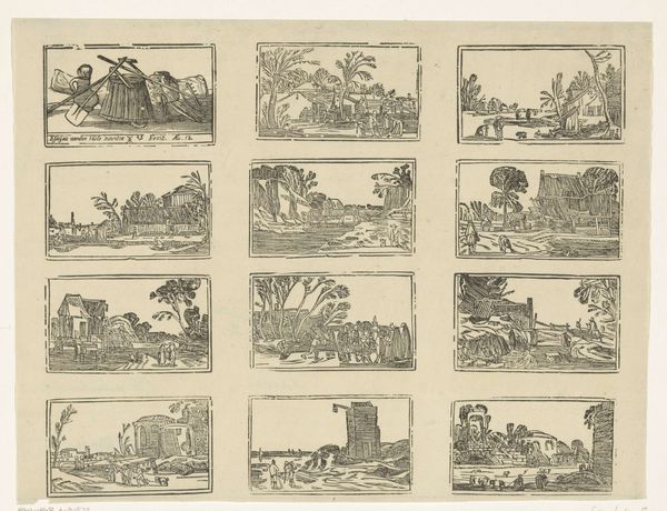 This print by Lutkie & Cranenburg presents scenes from Dutch history, celebrating the nation's past heroism and valor. It serves as a cultural artifact that encapsulates the ways in which national identity was constructed and promoted through art. The grid-like arrangement of images evokes a sense of order, each vignette narrating an episode of courage and sacrifice. Consider how it intertwines themes of patriotism, land, and masculine bravery. It speaks to the emotional connection between a people and their homeland, idealizing past generations as paragons of virtue. These representations play a crucial role in shaping collective memory and instilling a sense of national pride. The print encourages viewers to reflect on their own connection to the nation's history and values. In what ways does it maintain traditional representations or develop alternative narratives? How might its imagery resonate with contemporary conversations about identity and belonging? The artwork shapes and reflects societal issues of its time, while referencing the emotional and personal dimensions of the piece.