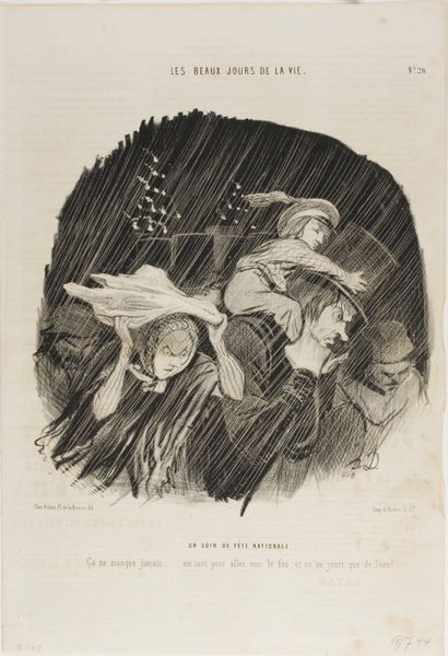 Curator: This is Ernst Barlach's "The Faithful Eckart 2: The Satisfied Family," currently residing here at the Harvard Art Museums. Editor: It has such a somber atmosphere, a rather bleak depiction. The charcoal strokes amplify the starkness of the figures huddled around the table. Curator: Barlach often explored themes of poverty and social inequality. The family's downward gazes and cramped composition could symbolize their limited prospects. Editor: I see a deeper cultural commentary. The lamp, though lit, casts little light, suggesting a failure of societal enlightenment, or even spiritual guidance. Curator: Perhaps. Barlach's association with Expressionism might suggest an emphasis on emotional impact over literal representation. Editor: I agree. While social issues are clearly at play, the work transcends mere documentation. It resonates with universal themes of human struggle and endurance. Curator: Yes, it's a poignant image, encouraging us to contemplate the nature of contentment amid hardship. Editor: It leaves a lasting impression, prompting reflection on our own roles in creating a more equitable society.