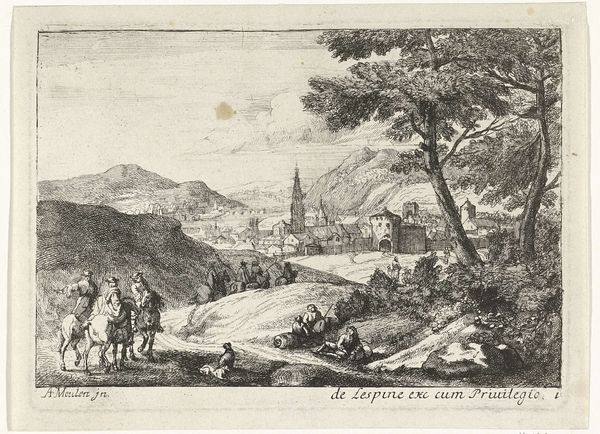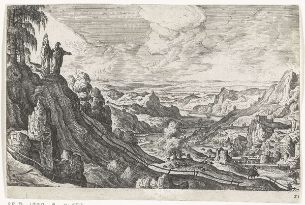 Gaspar Bouttats created this print titled 'Gezicht op de waterbron van Mara' somewhere between 1660 and 1695. This landscape rendering depicts a biblical scene; the Exodus of the Israelites, freed from slavery in Egypt, struggling through the desert, searching for water. The narrative touches on themes of survival, faith, and divine intervention, reflecting the religious and existential concerns of the 17th century. The print invites reflection on themes of displacement, resilience, and the search for solace in times of adversity. Consider the emotional weight of this quest for survival, and how Bouttats’ composition evokes both the harshness of the desert and the hope for redemption. How does the depiction of the figures – their postures, their interactions – convey a sense of shared purpose and collective struggle? What do you make of this visualization of a foundational story of the Judeo-Christian tradition?
