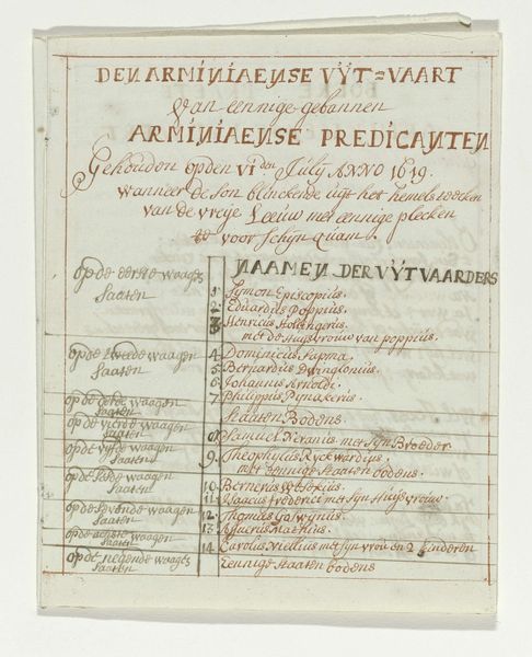 This document, ‘Explanation of the drawing of the triumphal gate ‘This fatherland, your father…', is an anonymous work made on paper, using the simple technology of pen and ink. The work is a broadside, likely printed in multiples. The black ink contrasts starkly with the white paper, creating a document intended for wide distribution. The dense text and tight layout show a prioritization of information over aesthetic flourish. This was not an artwork intended for precious display. The text is both Dutch and Latin. It is a piece of political propaganda related to the execution of Johan van Oldenbarnevelt in 1619. The text presents a critical view of Oldenbarnevelt and justifies his execution. The mode of production allows for the rapid dissemination of this perspective. Here, the means of production – the printing press – directly served a political end, blurring the lines between art, information, and ideology. The social context deeply influenced the way it was made and used.