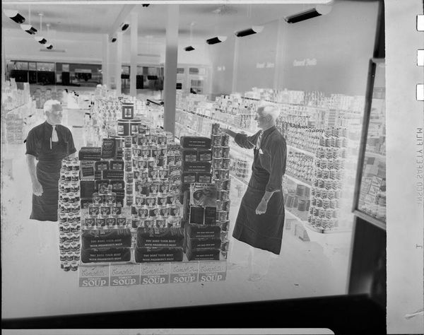 Curator: Bill Dane's "Untitled (So. Cal.)" captures a family in a bicycle aisle, evoking a sense of everyday American life. Editor: The composition is striking, almost dizzying. The sheer number of bicycles creates a visual density that nearly overwhelms the human figures. Curator: Dane's work often reflects on consumer culture and the transient nature of suburban existence. He presents scenes that are both familiar and slightly alienating. Editor: I see that alienation in the flattened perspective and the high contrast. The bicycles become a kind of barrier, visually separating the family from us. Curator: And perhaps suggesting a barrier created by consumerism itself. These are moments purchased and documented, but are they truly connecting experiences? Editor: Interesting point, but I am still marveling at the textural interplay of the tires, frames, and spokes. Curator: It is a scene ripe with questions about value and relationships. Editor: I'll have to consider the context more deeply now.