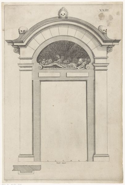 This is an anonymous drawing of a cemetery gate near the Westerkerk, made by an unknown artist. The Westerkerk, built in the 17th century, stands as a testament to Amsterdam's Golden Age, a period marked by unprecedented economic and cultural flourishing but also shadowed by the brutalities of colonialism and religious conflict. This image is a stark reminder of mortality. The skulls and bones aren't merely symbols, they are a cultural artifact reflecting the shifting attitudes towards death in the early modern period. The gate, adorned with skulls and skeletal remains, blurs the line between the sacred space of remembrance and the bustling world of commerce and everyday life. The skeleton laid behind the arch in the middle hints to the ever-present awareness of death in the 17th century. It invites us to reflect on the social and spiritual anxieties of a society grappling with its own expansion and the ever-present reality of human fragility.