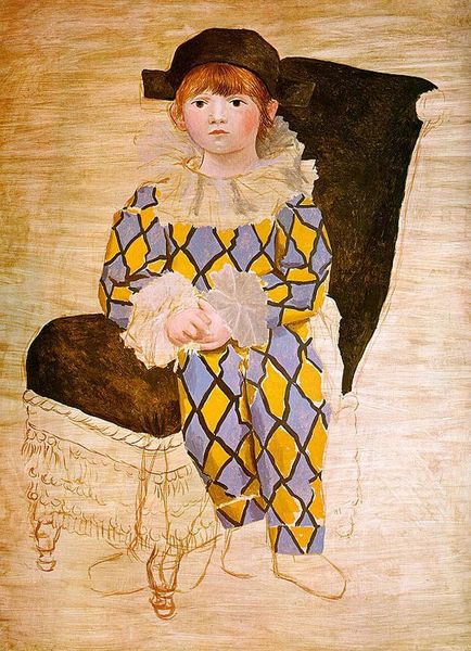 Curator: Good morning. Before us hangs Renoir’s “Girl with Red Stockings,” created around 1886. It is currently held in a private collection. Editor: Striking how the figure dominates the canvas despite the subdued palette. I am drawn to how the brushstrokes dance on the surface, a symphony of texture and light that refuses to settle. It looks almost unfinished, like a fleeting impression. Curator: The fleeting quality may be a deliberate attempt to capture the ephemerality of youth and innocence. Notice how Renoir uses color—the bold red of her stockings drawing the eye down to anchor the otherwise dreamlike image, perhaps symbolic of groundedness against a nebulous future. Editor: Yes, there's a structural tension there. The chromatic restraint almost feels strategic, making those flashes of red all the more intense. How do you interpret the blurred environment; is it purely atmospheric? Curator: I think the generalized background elements serve to universalize the subject, transcending individual portraiture. This could be any young woman, on the cusp of adulthood, burdened by unspoken expectations. Her attire whispers of peasant life but it is still full of feminine codes, subtly pointing toward ideas about beauty. Editor: Codes of femininity in 1886 certainly carried societal baggage. The layering of forms creates spatial ambiguity – an ambiguity also reflected in her averted gaze. What psychological space do you believe Renoir is inviting us to inhabit? Curator: A space of gentle introspection, I think. A poignant contemplation of burgeoning womanhood amidst societal structures. The bright halo gives a visual nod to traditional, revered women in art history, but the lack of defined details keeps the girl accessible and current. Editor: Perhaps what resonates is precisely this combination. This picture is indeed beautiful and complex in its deceptive simplicity; Renoir gives form to thought-provoking ambiguity using pure light and brushstroke. Curator: Exactly, that’s the Renoir effect, that ability to hint at meaning without overtly defining it. Editor: Agreed. It lingers in the mind.