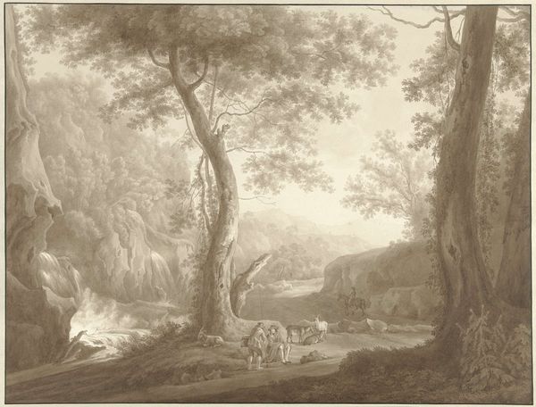 Editor: This is Wilhelm von Abbema's "Stony Brook and Sparrow-hawk in the Woods", and it's incredibly detailed. The landscape feels both romantic and a bit melancholic. How do you see this piece fitting into the artistic landscape of its time? Curator: Given the title, I wonder what the political or social symbolism of a brook and sparrow-hawk might convey. What message about nature or society might Abbema be trying to share with his audience through this composition? Editor: That's a really interesting angle. I was so focused on the detailed naturalism! Curator: It's important to consider how landscapes like this were used to construct national identity and reflect societal values. Perhaps this seemingly innocent scene is more charged than we initially perceive. Editor: I'll definitely look at landscapes with fresh eyes now! Curator: And I'll think twice before dismissing any sparrow-hawk I see.