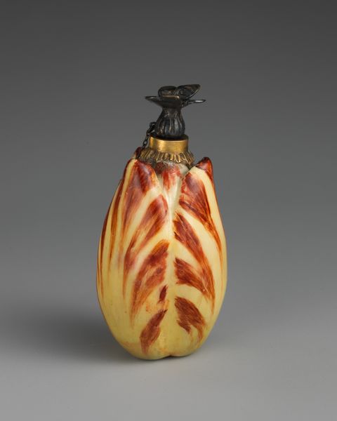 This small, anonymous pear, made of glazed earthenware, presents us with a curious combination of nature and culture. On the one hand, it mimics the organic form of a pear, a common fruit, offering a slice of the natural world. On the other hand, it is clearly artificial. The visual codes here are interesting: the red and yellow glaze references the natural colors of a pear, but the stylized application and the slot at the top transform the object into something else. This is not just a pear; it is a bank, a container for coins. The transformation of a natural form into a receptacle for money speaks volumes about the relationship between nature and commerce. It suggests a cultural impulse to tame nature, turning it into a vessel for economic activity. To understand this impulse, we might turn to studies of popular culture, economic history, and the history of collecting. What can the history of childhood teach us about saving? What role did banks play in the social and financial structures of the time? Through this sort of research, we can come to understand the social role of art.