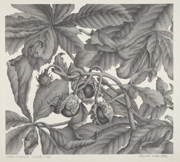 Editor: Here we have Wanda Gág’s 1926 print, "Pipe and Flowers." It’s a rather subdued still life rendered in, I believe, lithography? The texture feels so tactile; you almost want to reach out and touch the folds of fabric and the delicate petals. What's your take on this understated composition? Curator: Ah, Gág! Her works always strike me as little dreamscapes. There's a quiet intensity here, a feeling of… intimacy, almost. And yes, I see lithography too, you can feel the artist’s hand, which makes the otherwise ordinary arrangement of a pipe and flowers incredibly compelling, don’t you think? Like pausing to truly see beauty in the mundane. Have you ever felt a similar connection? Editor: Absolutely. The juxtaposition of the organic, fleeting flowers against the rigid, manufactured pipe is intriguing. It suggests a commentary on the contrasts of life, maybe? Curator: Perhaps. Or it could simply be about observing form and shadow, light and dark. The flowers appear fragile and transient, while the pipe, though also inanimate, suggests leisure, perhaps even escape. Do you get that sense of implied narrative? What do you feel emanates? Editor: It does evoke a certain stillness, almost like a captured moment of quiet contemplation before or after a busy day. I'm also really drawn to how she manages to create so much depth with such a limited tonal range. Curator: Precisely! It's as though Gág is saying, "Look closer; true beauty lies not in grand gestures but in subtle details." Makes you think about your own way of approaching stillness, maybe? Or seeing beauty. Editor: Definitely! It’s made me realize how powerful it can be to find the extraordinary in the ordinary, especially in such simple objects, through thoughtful graphic representation. Thank you! Curator: The pleasure was all mine! And remember, that's the magic of art, isn't it? To find those sparks of connection and meaning.