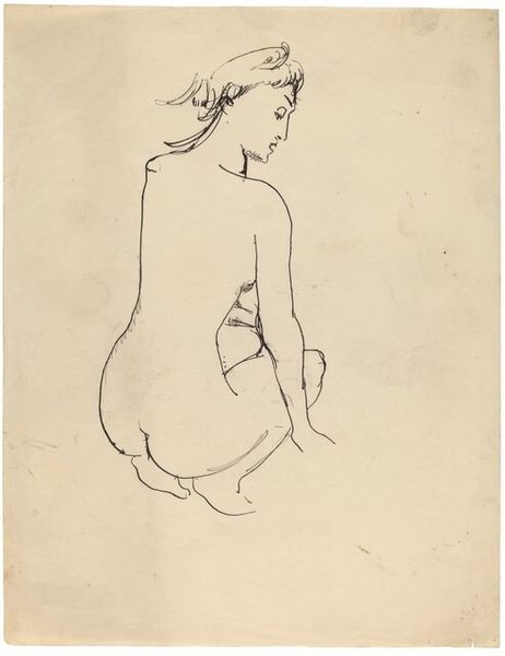 Editor: We're looking at "Seated Girl", a pencil drawing by Mark Rothko. There’s something so immediate about it; it captures this little girl with simple lines and subtle shading. How do you approach something like this, focusing on the work itself? Curator: The drawing arrests us with its simplicity. Observe how Rothko utilizes line to construct form. The composition hinges on the tension between the delicate outlines and the areas of shadow that define the figure’s volume. It’s an interesting dialogue between absence and presence. What effect does this have on your perception? Editor: It makes her feel very present but also vulnerable, like a fleeting impression. Do you think the sketch-like quality, the exposed pencil lines, contribute to this feeling? Curator: Precisely. The visible pencil strokes invite the viewer to consider the artist's process. This exposes the raw elements of artistic creation, demystifying the image while paradoxically enhancing its expressive power. The work privileges form and the act of its creation. Editor: So, it's not just about what's depicted but *how* it's depicted, with the formal elements carrying their own meaning? Curator: Exactly. The materiality of the pencil, the lightness of the strokes, all become significant aspects of the artwork's intrinsic qualities. Did you observe that the background is mostly empty, forcing us to center the girl's figure? Editor: Yes, the negative space really emphasizes her presence, and maybe even her isolation. I see that so clearly now. Curator: Indeed. By examining how Rothko manipulated line, shadow and composition, we discover profound artistic meaning. Editor: That gives me so much to consider when viewing artwork. Thank you for this lesson in formal qualities!