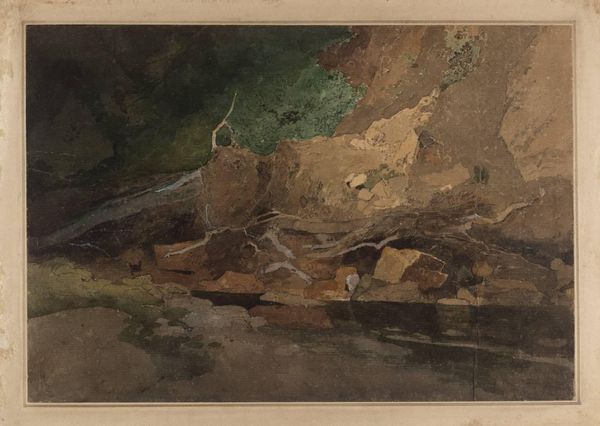 Curator: Here we have John Sell Cotman's "Distant View of Greta Bridge from Mortham Wood," currently residing in the Tate Collections. Editor: Wow, it’s like a watercolor dream. So muted and gentle, almost a memory fading into the paper. Curator: Cotman, who lived from 1782 to 1842, was part of a movement to depict Britain’s landscape, reflecting a growing national identity. Note how his style bridges the picturesque and the sublime. Editor: You know, that bridge in the distance, it feels like a pathway to another realm. It’s barely there, but it’s a beacon, a silent promise of something beyond. Curator: The composition invites us to consider how natural beauty, like the wood here, and human endeavors, like the distant bridge, coexist, reflecting the impact of industrialization. Editor: I like that. I hadn't thought of the industrial aspect. For me, it’s more about the veil between worlds, the seen and unseen. Curator: Ultimately, Cotman offers us a chance to contemplate the intersections of history, place, and personal experience. Editor: It does that, it really does. Like a quiet invitation to pause and see what shimmers beneath the surface.