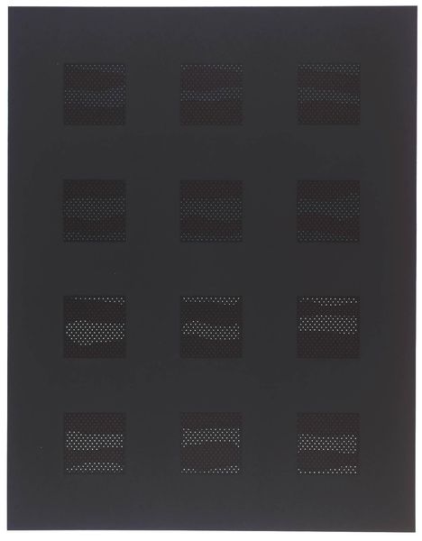 This is Julio Le Parc’s ‘Silver Square Mobile on Black’, and it's made of what looks like reflective squares hanging in front of a dark background. What strikes me is the way Le Parc uses these simple shapes to create something that feels so alive. The squares are not uniform. They seem to dance and catch the light differently, and this gives the piece a sense of movement, like it's breathing. The reflective surfaces of each square multiply the light and create different patterns, drawing you in. Each movement of light and shadow offers a different composition. The black background is essential here; it sets off the silver, it’s not just a backdrop but an active part of the experience. It reminds me of the work of artists like Jesús Rafael Soto, where simple materials are used to create complex visual experiences that challenge our perceptions. Like with Soto, Le Parc encourages us to see the potential for dynamism and change within simple forms.