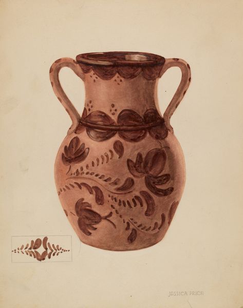 This pitcher was rendered with watercolor by Giacinto Capelli, sometime between 1870 and 1920. The artist's chosen a simple palette, mainly blues and browns, and you get a sense of the handmade quality of the original object from his process of artmaking. I love the way the surface almost glows. It's like Capelli is showing us not just the object, but how light plays on its surface. The brushwork is free and expressive, especially those leafy decorations. They feel less like perfect botanical studies and more like gestures, capturing the spirit of the plant rather than its precise form. Notice the way the blue is applied in layers, creating depth and texture. There's a real sensitivity to the material, a feeling for the way the watercolor moves and settles on the paper. It makes me think of Giorgio Morandi, who also found endless inspiration in simple, everyday objects. Both artists remind us that beauty is often found in the most unexpected places. It's a conversation across time, an echo of one artist's vision in another.
