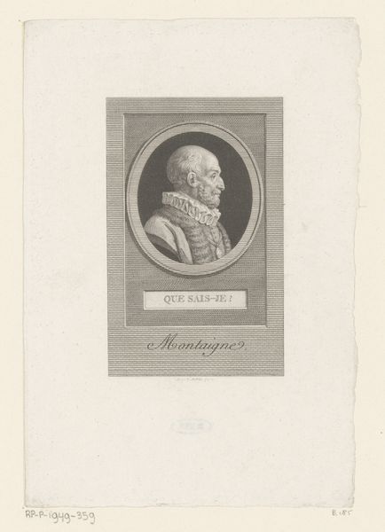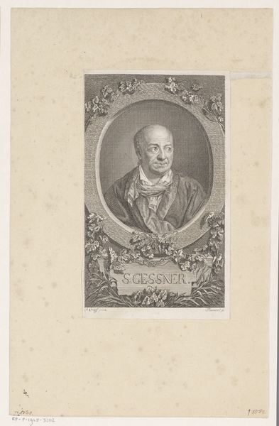 Curator: Adriaan Boon created this piece, "Portret van Scaevola Sammarthanus," in 1579. It's an engraving, done with ink on paper, currently residing at the Rijksmuseum. Editor: The first thing that strikes me is the ornate detail – the ruff around his neck, the floral frame, everything feels precise, almost austere despite the clear attempts at embellishment. Curator: Considering it's an engraving, a print, the meticulousness makes sense. Each line would have to be carefully etched into the metal plate. Think of the labor involved in reproducing this image! These prints allowed for wider circulation of portraits of important figures. Sammarthanus was a noted humanist and poet, and engravings like these served to immortalize him. Editor: The frame itself, though, seems laden with classical symbols – laurel leaves, perhaps? Definitely meant to evoke prestige, aligning Sammarthanus with the traditions of ancient scholarship. But look closer—those flowers! There's something softer, almost fragile, amidst all that academic seriousness. Curator: The contrast is interesting. The act of engraving itself is quite rigid and controlled, yet that's balanced by the symbolic language—both the academic implications, but as you say, the softer aspects. Note Boon's signature there. It subtly advertises the maker’s skill. Editor: I wonder, too, about the placement of the text encircling Sammarthanus. It almost creates a halo effect. Clearly, this is more than just a record; it’s an assertion of his importance, bordering on idealization. Is the visual language borrowing from religious iconography to elevate his status? Curator: Potentially, although that also depends on who's buying it. Its meaning shifts with different contexts and uses. Maybe for some, this simply functions as a well-made likeness or a collector's item; the market dictates value and interpretation. Editor: All that symbolic encoding paired with the mechanics of reproduction reveals so much about Renaissance aspirations. It speaks to a world deeply invested in images as carriers of status, intellectual heritage, and perhaps even a longing for immortality. Curator: Exactly! Focusing on the object itself – the print, the paper, the ink, the meticulous labor—lets us peel back layers of meaning attached through cultural consumption. Editor: And focusing on the symbolism, we’re seeing how they build lasting meanings, projecting prestige through meticulously crafted detail. Curator: Thank you. Editor: It was insightful.