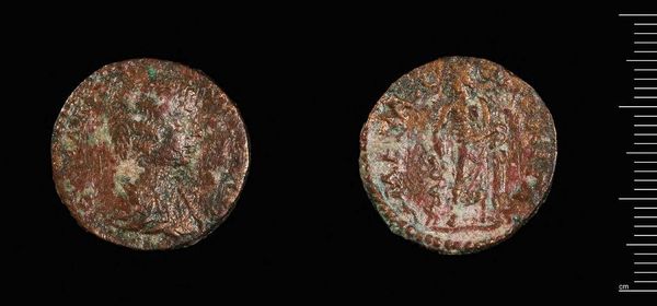 Curator: This is a coin of al-Awhad from Mayyafariqin, now Silvan, Turkey, a copper alloy weighing about 10 grams. The material feels so tactile, doesn't it? You can practically feel the trace amounts of other metals mingling with the copper. Editor: Absolutely, and there's something profound about holding currency—a symbol of power and exchange. I am especially struck by the cultural implications of using currency to represent power during times of conflict. Curator: Indeed, the minting process itself speaks volumes. The careful combination of metals, the die-striking technique—it all reflects the socio-economic dynamics of the time. It would be fascinating to look at the labor practices of the mint. Editor: Considering the region and likely historical period, who was depicted and why on this coin may reveal much about who controlled the wealth and resources. What does it tell us about the power structures of the era? Curator: Such a tiny, humble artifact carries such a heavy weight of history. Editor: Precisely. It is a potent reminder of the human stories intertwined with even the smallest objects.