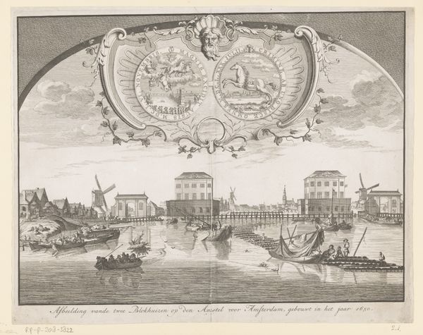 Editor: Here we have A. Verkerk's watercolor and print work, "Koophandel en Zeevaart, decoratie op de Nieuwmarkt, 1795." The monument to trade and seafaring, complete with a ship on top, seems to stand in contrast to the delicate, almost faded quality of the watercolor medium. What can you tell me about the piece? Curator: Let's consider the historical context. 1795 was a pivotal year. Note the flags—the French tricolor alongside the Dutch flag, suggesting the Batavian Republic. Verkerk’s choice of print and watercolor, relatively accessible materials, democratizes the imagery. This isn't an oil painting for the elite, but a potentially reproducible image celebrating commerce within a new political order. Editor: So, the materials themselves speak to a changing society? Curator: Precisely! Think about the labour involved. Printmaking allowed for widespread dissemination of this message. Watercolor, though often associated with amateur artists, enabled the swift creation of many similar images, think of mass production principles being applied. The materiality mirrors the aspiration of accessible trade and new political ideas being ‘consumed’ by a wider populace. Does that make sense? Editor: It does! The work seems to be self-aware in its design, like it uses these more common materials on purpose, to celebrate those new ideals and reflect a changing society. I appreciate learning that this print reflects an early attempt to promote the widespread accessibility of new economic and political ideas! Curator: Indeed! It is the materiality of art and its role in cultural consumption.