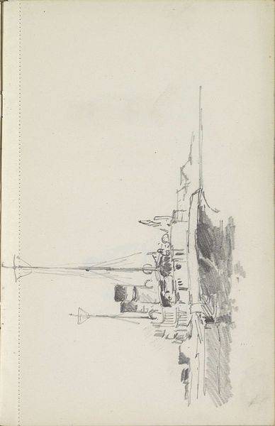 Cornelis Vreedenburgh made this sketch of figures on a sailboat at a landing stage with pencil on paper. It’s all about these delicate, dancing lines. They seem to barely touch the surface, like a whisper of an idea. You can really see how he's feeling his way through the scene, capturing the essence of a moment. What I love is the texture he creates with these simple marks. Look at the darker lines around the landing stage, the way they build up to suggest depth and shadow. Then, notice how these contrasts with the sparseness of the lines used to depict the boat and figures, creating a sense of lightness and movement. The whole drawing comes alive because of the relationship between these varied strokes. Vreedenburgh reminds me of other sketchers like Manet or Whistler, who were equally fascinated by the fleeting moments of everyday life. In the end, this piece feels like a reminder that art isn't always about the finished product. Sometimes, it’s about the joy of exploration and the beauty of the process.