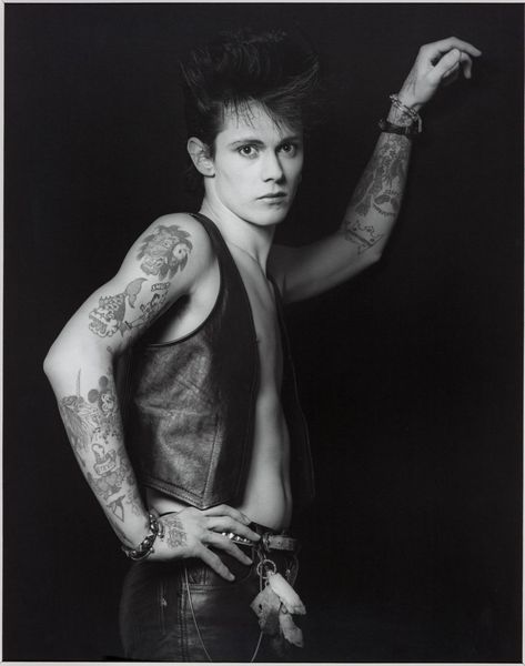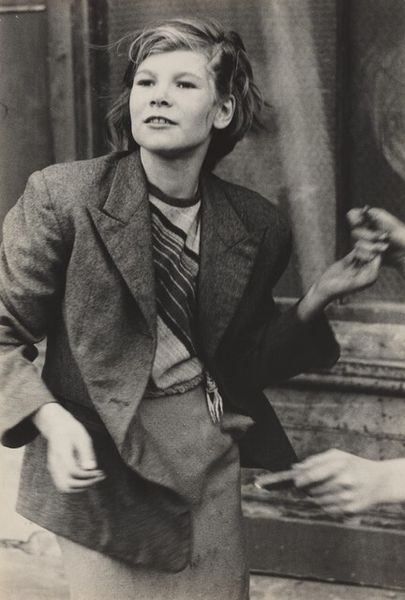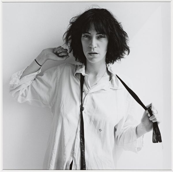 Ann Hamilton made this gelatin silver print, part of her “body object series,” sometime in the late 20th century. It's a black and white photograph, so the process here is all about light and shadow, a sort of sculpting with tone. There’s this very direct, almost confrontational stare from the subject, but then you notice the boot. It’s being worn as a sleeve, extending out to the side. It’s such a simple gesture, but it throws everything off balance. The texture of the boot, the way it catches the light, makes it feel both heavy and absurd. It's like a surrealist joke, but it also makes you think about the body, about clothing, and about how we present ourselves to the world. I love that Hamilton isn’t afraid to be weird, to play with expectations. You could think about someone like Hannah Hoch, who was also using collage and photography to question social norms and ideas of identity. Ultimately, this piece isn’t about answers, but about opening up a space for questions and possibilities.