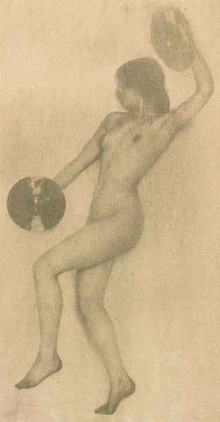 Frank Eugene created this photograph, "Male Nude," at the turn of the 20th century, using platinum print. The image evokes classical ideals of beauty, but its hazy, dreamlike quality also aligns with the Pictorialist movement in photography. Consider the cultural context: this was a time of increasing industrialization and urbanization, leading artists to seek refuge in idealized visions of nature and the human form. The male nude was a common subject in academic art, representing strength, virility, and classical ideals. However, Eugene's soft-focus and painterly technique subvert traditional notions of photographic realism, aligning it with art. This piece existed within a specific institutional framework: photography was still fighting for recognition as a fine art, and Pictorialists like Eugene sought to elevate it by imitating the aesthetic qualities of painting and printmaking. To understand this artwork fully, we can explore the history of photography, the influence of classical art, and the social attitudes towards the male nude in the early 20th century. The meaning of art is always dependent on context.