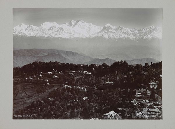 Editor: So, this is Vittorio Sella's photograph, "Laila Range and Mulkhura Valley." The monochromatic tones create a somber mood. What's striking to me is the way it captures the imposing scale of the landscape. What do you see in it? Curator: I see the labor involved in producing such a photograph, literally the physical demands of transporting equipment in mountainous regions, but also the chemical processes involved. These were not automated images; they were crafted. How does that change your understanding? Editor: I hadn’t considered that! It makes me think about the contrast between the industrial process of photography and the "untouched" nature it depicts. Curator: Exactly! And how that photograph may have been consumed—who saw it, and what purpose did it serve? Think about its value as both art and documentation. Editor: That gives me a lot to think about regarding the relationship between photography, labor, and how we perceive nature. Thanks! Curator: My pleasure. It's important to understand the labor in art.