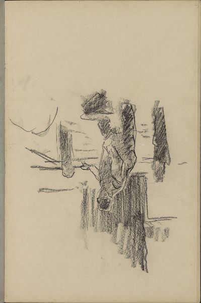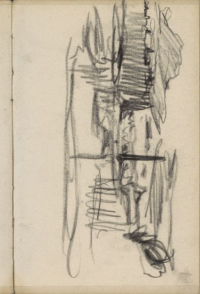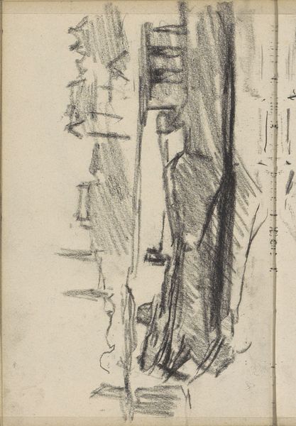 Editor: This is "Paardentrams, mogelijk op de Dam te Amsterdam" – Horse-drawn trams, possibly on Dam Square in Amsterdam – by George Hendrik Breitner, dating from around 1886 to 1903. It's a pencil drawing, and I find the sketch-like quality really interesting. It feels so immediate, capturing a moment in time. What can you tell me about its context? Curator: Indeed, it's quite a dynamic piece. Breitner was known for capturing urban life in Amsterdam. Drawings like these offer a fascinating window into the rapid industrial and social changes occurring at the time. How do you think the portrayal of transportation reflects these changes? Editor: I guess the horse-drawn trams represent a shift from older forms of transport, but they’re not quite as modern as, say, automobiles. They’re like an intermediary step. Does this "in-betweenness" connect to how the piece was received by audiences at the time? Curator: Precisely. Breitner was part of a movement of artists documenting modern life and often faced criticism for his unconventional approach. Think about the rise of photography then and its impact on art's role in society. How did that dynamic shape artistic practices like Breitner's? Was it seen as a challenge to artistic norms? Editor: I see what you mean. Maybe he was using the sketch format to show everyday life as something fleeting and real, whereas photography was just emerging as a way of freezing an image perfectly? Curator: Exactly! Now, let's think about how this drawing might have functioned publicly. In what spaces could Breitner's art be found, and how might that have influenced people's understanding of Amsterdam at the time? Editor: Interesting. I hadn't really thought about that. It’s not just about the image itself, but how it circulated and was understood in society. Thanks for putting it in that broader perspective! Curator: My pleasure. Looking at art as a product of social and institutional forces reveals so much about its enduring power.