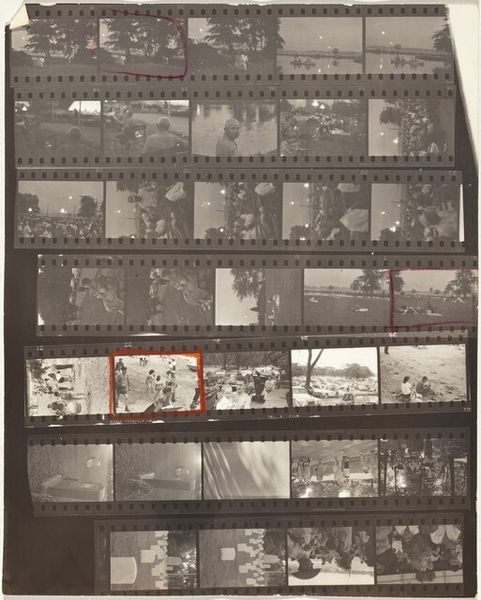 Robert Frank made this photographic contact sheet, "11th Street story 56/People You Don't See 15," to explore different views of a scene, a bit like a painter does with studies. Look at the texture here; it's raw, it's film! The stark black and white and grainy quality create a sense of immediacy, like a snapshot from a dream. Notice the handwritten marks, like graffiti scrawled across a wall. These feel like the artist's own interventions, blurring the line between documentation and expression. In the middle row, there's a frame with a street scene, and a car parked on the side. It's a fleeting moment, like a memory half-forgotten. It reminds me of Ed Ruscha's parking lots, but with a grittier, more human touch. Frank's work always feels like a conversation, an open-ended question about what it means to see and be seen. There's no right answer, just a constant searching, which is a kind of beauty in itself.