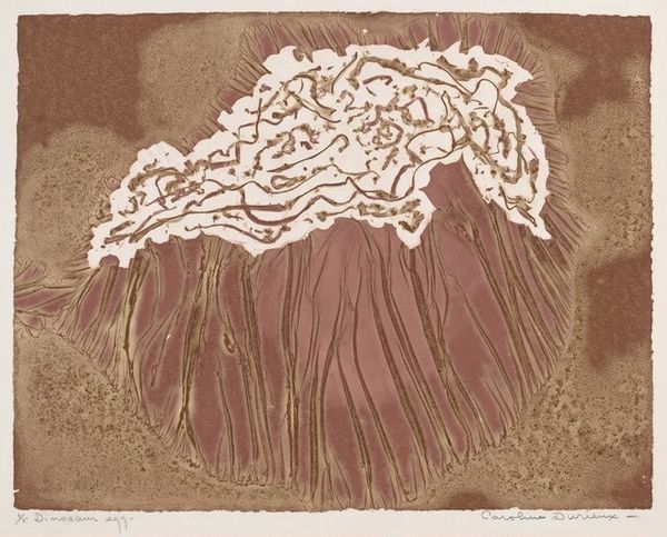 Curator: Immediately, I'm drawn into this little world – these "Two Hat-Shaped Chinoiserie Flowers with Fanciful Leaves", a nineteenth-century watercolor drawing and print. I feel like I've stumbled into the botanical daydreams of someone exceptionally imaginative. Editor: Botanical dreams is right. The dark background emphasizes that this isn't an objective study of the plant kingdom. This print probably adorned a piece of furniture or textile as part of some decorative scheme, no? Who needs botanical accuracy when you're selling a fantasy? Curator: Exactly! There’s this playful combination of precision and whimsy. These aren't flowers I’ve ever seen, but there’s an earnest quality, a naive sincerity in their construction, like someone passionately rendering a half-remembered vision. It speaks to the strange space between our imagination and observation. Editor: Speaking of construction, consider the printing process in the 19th century. The application of color, how it suggests texture, that says something about value assigned to skillful imitation. This was before mass production devalued such painstaking labor. The materiality matters so much: the paper, the pigments. These were trade items, markers of global exchange. Curator: I can see the global reach reflected in the imagined botany—vaguely eastern, totally novel. To me, it feels like a love letter to the very act of seeing—a celebration of curiosity. The whole composition is a carefully arranged meditation, drawing from the natural world while subtly transforming it. Editor: I see the transformation as part of broader economic system. Who dreamed these botanical fantasies, and who labored to reproduce them on paper or fabric? By understanding the context of their making, we’re looking at class, consumption, labor – and the real social life these otherwise ephemeral objects possessed. Curator: Well, however we interpret the work, it retains the capacity to transport us. Editor: Agreed, its journey from studio to museum walls tells quite a complex story of shifting cultural value, which may well exceed anyone's initial "dreams."