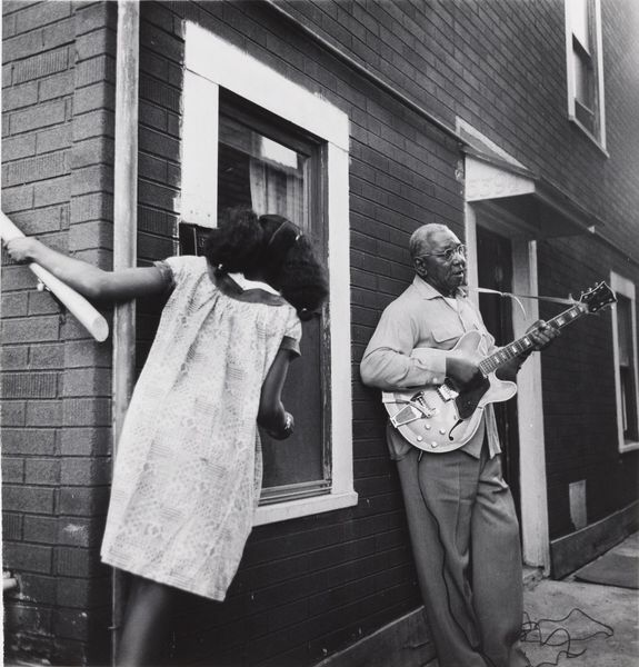 This black and white photograph by Nathan Lerner captures two street musicians, a man and a girl, with their instruments. The violin and guitar they hold are not mere objects; they are potent symbols of cultural expression. Music itself, throughout history, has been a powerful force, used to convey emotions and stories. Consider the lyre depicted in ancient Greek art, or David playing the harp, each an instrument laden with religious and cultural significance. Here, the presence of these instruments speaks to a deep-seated human need for expression and connection, evoking a collective memory of music's role in community life. There is an echo of itinerant minstrels and troubadours from the Middle Ages; their melodies traveling from town to town, carrying news and tales, reflecting society's ever-evolving consciousness. This image pulls at our deepest, subconscious understanding of music as a means of survival, connection, and shared experience, reminding us of its cyclical progression.