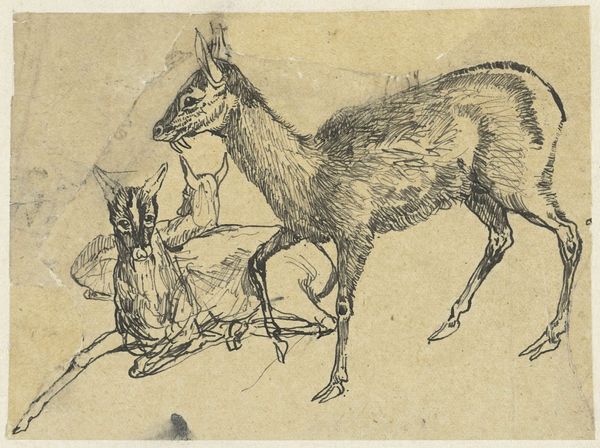 This lively pen drawing of hunting dogs was rendered by Johannes Tavenraat. See how the lines are quickly sketched and possess an almost nervous energy? The dog, a symbol of loyalty and vigilance, has been a companion of humankind since antiquity. The depiction of dogs in art carries a rich history. We see them in ancient Egyptian art, guarding tombs and accompanying deities. In classical antiquity, they were emblems of fidelity, often appearing on Roman mosaics as guardians of the home. In Renaissance paintings, dogs frequently symbolize loyalty and domesticity, often at the feet of nobles. Here, these hunting dogs evoke not just fidelity but the thrill of the hunt, a primal drive deeply embedded in our collective psyche. The dog, poised and alert, seems to represent humanity's connection with the natural world and the instinctual, often subconscious urges. It reminds us that symbols are never static, but living entities that evolve and adapt as time moves on.