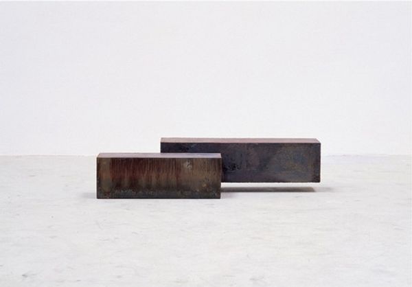 Editor: So, here we have this…intriguing thing. An *Untitled* mixed-media sculpture by Werner Haypeter from 1999. The combination of stark black and a vibrant, almost neon, yellow…it’s so simple, yet it grabs your attention, doesn’t it? Sort of unexpected. I'm getting a slight, anxious, almost humming energy from this piece. What’s your read on this, coming at it with a bit more… wisdom? Curator: Wisdom is a kind word, let’s call it… time in the saddle! I agree, there's a raw, almost brutalist simplicity. The black and yellow is a classic visual shorthand. Danger? Caution? Or something more subliminal? I see three bars – horizons perhaps? Ground, a void, then something just out of reach. Minimalism loves playing these visual tricks. Makes you question – what's real? Editor: I see what you mean. Like, are these meant to be building blocks or obstacles? What do you think Haypeter was trying to say by making the work floor-based? Is there something specific here about that… lack of a plinth? Curator: Oh, absolutely! Ditching the plinth smashes that art-on-a-pedestal notion. It grounds the work – literally! Invites you to consider its relationship to the everyday, the architectural space around it. Minimalist artists were always trying to redefine what art could be. It’s art entering into direct dialogue with the viewers space rather than presenting from on high. Now does that grounding impact your anxious, humming vibe any? Editor: Yeah, it actually does. It feels like something both present and questioning… as if it’s always been part of the floor but challenges that sense of space. I love how just stripping something down can make you think so much more. Curator: Exactly! It's not about providing answers; it's about posing the right questions. Minimalism at its best – stripping away, and creating…presence. I can't wait to ruminate on this piece and find new impressions when I come back tomorrow! Editor: Me too! Thanks for the wisdom!