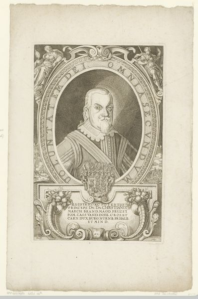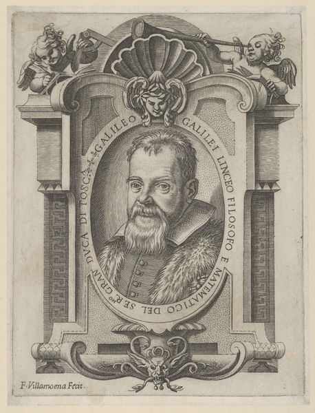 Johann Carl von Thill created this portrait of Giulio Jasolino using etching, a printmaking technique, sometime in the mid-17th century. The elaborate framing and inscription around the portrait point to the sitter's prominent role as a professor of anatomy and surgery at the Royal Gymnasium of Naples. During this era, Naples, under Spanish rule, was experiencing a flourishing of intellectual and scientific inquiry. The establishment of institutions like the Gymnasium reflected a growing emphasis on formal education and the advancement of knowledge. Jasolino’s expertise in anatomy places him at the forefront of the scientific revolution. The choice of portraiture, combined with the surrounding Latin text, serves to immortalize Jasolino and legitimize his academic status. Understanding this artwork requires delving into the history of Naples, the development of medical education, and the conventions of portraiture in the 17th century. Catalogues and archival documents would provide valuable insight into Jasolino's career, as well as the cultural and intellectual life of Naples. In this way, a print can serve as a window onto the history of institutions and social status.
