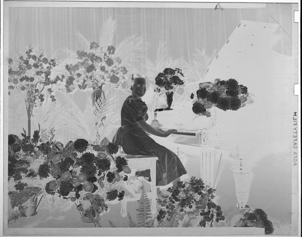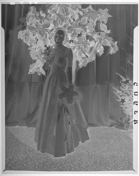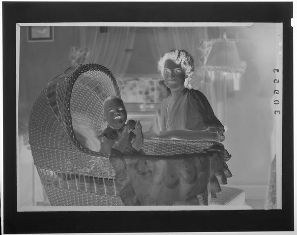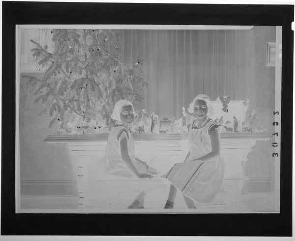 Curator: This untitled image by Martin Schweig captures two women in dresses and corsages, seated on a couch. The photographic print measures roughly 4 by 5 inches. Editor: Oh, it feels like stepping into a dream, doesn't it? A faded memory, delicate and somehow haunting. Those dresses look so very uncomfortable. Curator: Yes, the materiality of the image itself—the photographic process, the paper used— speaks to a specific era of portraiture and social status. The corsages, too, are a manufactured item, indicative of a certain class. Editor: I wonder what they're thinking. They look so still, almost like wax figures. Maybe they're bored or maybe they're simply enduring the process, knowing this image will outlive them. Curator: The formal nature of the studio portrait and the labor involved are crucial to understanding its cultural significance. The corsets, the flowers, it is all social performance. Editor: It makes me want to write a poem about the weight of silence and the untold stories etched on their faces. I wonder what their dresses feel like. Curator: Perhaps, examining the production context of this photograph can reveal hidden meanings embedded within. Editor: Absolutely. It's like trying to catch a fleeting feeling, a story whispered on the wind. Beautiful.
