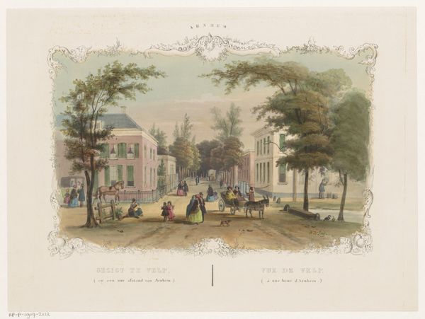 Hendrik Wilhelmus Last created this print, "Gezicht op Rijzenburg", offering us a glimpse into the social life of the Netherlands during the 19th century. Last’s detailed rendering captures a moment of leisure, but let’s consider what this scene omits. The gathering of people in their finery presents a particular slice of society. Consider the Dutch colonial empire at this time and how class is subtly at play here. The print invites us to reflect on who has the privilege to partake in leisure and who is excluded. How do the rigid gender roles of the time inform this image? Women are depicted in their traditional, elaborate dresses, performing a certain kind of femininity while men conduct business around tables. The formal attire of the figures speaks to the social and economic structures that defined their lives. "Gezicht op Rijzenburg" isn’t just a scenic view; it’s a tableau of societal values and hierarchies quietly at play.