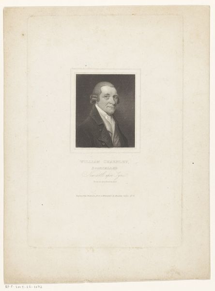 Editor: So, this is a print, an engraving actually, called "Portret van Friedrich Gottlieb Klopstock," made sometime between 1822 and 1863 by Lazarus Gottlieb Sichling. There's something very still and composed about it. I’m struck by how much the lines define the form, the shadowing adding depth and gravity. What do you see in it? Curator: A formal approach reveals much. Note how the artist meticulously renders the subject's features. Sichling’s employment of line is fascinating; the varying thickness creates depth, directing the viewer's eye across the composition. What do you notice about the textures conveyed purely through engraving? Editor: I see how the ruffles of his jabot, the soft fabric of his coat, and even the skin itself are differentiated through those lines. It’s impressive that he can suggest so much tactile information without color or a range of values. Curator: Precisely. The subtle gradations achieved only with line is masterful. Consider the overall balance, the distribution of light and dark. Where does your eye rest first, and how does it move from there? Editor: I immediately looked at his face, especially the eye looking toward the right. And then my eye went down to his white jabot. There’s a clear contrast there that creates a focal point. Curator: Notice the symmetry, which is so precise. Yet it doesn't feel static because of that gaze and the subtle differences in shadow. Sichling expertly manipulates line and value to capture the essence of form and character. Have your perceptions of the piece evolved? Editor: Definitely! I see the artistic decisions so much more clearly now. Thinking about line, shadow, and composition really unlocks what the artist was trying to do. Curator: Indeed. And perhaps also unlocks what we are trying to do when we truly look at a work of art.