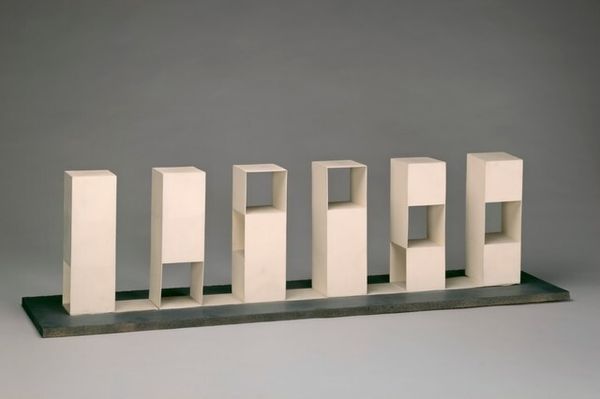 Alberto Giacometti created ‘No More Play’ using marble, plaster, and paint. Its flat, horizontal expanse immediately suggests a stage or an arena, evoking both playfulness and a sense of contained drama. The composition is dominated by a series of smooth, rounded forms embedded in the marble, contrasting with sharp, vertical figures that rise from the surface. This juxtaposition destabilizes any easy reading of the scene. The interplay of geometric and biomorphic shapes creates a tension, enhanced by the stark contrast between the cool marble and the warm, painted figures. This work challenges the viewer to question the boundaries between sculpture and theater, reality and representation. Giacometti uses a semiotic language of forms to explore themes of alienation and the human condition. The formal qualities of the piece – its flatness, its contrasting textures, and its enigmatic figures – function within a larger discourse about the limitations of representation and the complexities of modern existence. It remains a powerful statement about our attempts to make sense of the world through art.