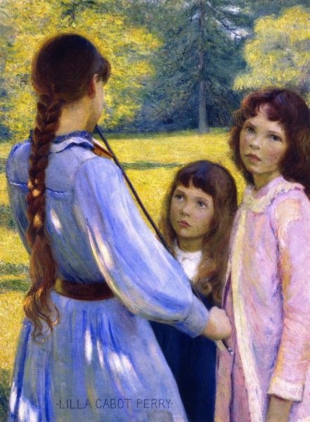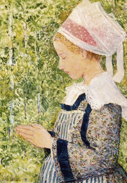 Carl Larsson painted 'Lisbeth at the Birch Grove' with oil on canvas, and what strikes me is how the making of the picture feels so present. There's a sense that Larsson has built this image up through layers of color. The way the light filters through the birch trees and glances off Lisbeth's face is just beautiful. And it’s all done with these delicate, almost pointillist touches. You can see the individual strokes, especially in the bark of the trees, where he’s built up texture with dabs of white, grey, and black. It’s like he’s saying, "Here’s the paint, here’s the making of the image, and here’s the magic it creates." Larsson reminds me a little of Vuillard, with his focus on domestic scenes and intimate portraits, though his palette is brighter and more optimistic. Both artists, though, invite us into their world and make us feel like we're part of the story. And isn't that what art's all about? Leaving things open, so the conversation can keep going.