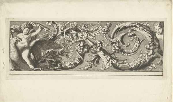 Heinrich Aldegrever created this tiny engraving of scrolling foliage and a putto, sometime in the first half of the 16th century. Aldegrever lived during the Protestant Reformation, a time of intense religious and social upheaval, and his work often explores themes related to humanism and morality. Consider the figure of the putto. While seemingly innocent, the image of the child-like figure also evokes complex social issues around childhood, innocence, and power. In a society marked by rigid class structures and religious doctrines, childhood was often idealized, yet children were also subject to the strictures of social expectations. Aldegrever’s choice to place the putto within a decorative, almost ornamental context, raises questions about the role of children within the broader social fabric, hinting at the delicate balance between freedom and constraint, innocence and experience. How might we see childhood differently, through the lens of history?