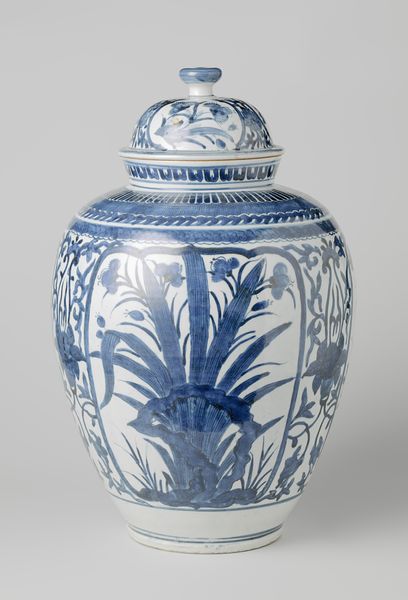 Editor: Here we have a porcelain vase created by Coalport between 1881 and 1891. The Met calls it "Vase with Birds and Bamboo." The birds and bamboo really pop against that gold background, creating such a striking image! What’s your take on this decorative object? Curator: What strikes me is the explicit fusion of European Art Nouveau aesthetics with East Asian artistic motifs, especially the birds and bamboo. What does it mean when one culture borrows and appropriates from another, particularly during periods of colonial expansion and unequal power dynamics? Is this a celebration or exploitation? Editor: That’s interesting. I hadn't considered it in terms of cultural appropriation. I guess I just saw a pretty vase. Is that checkerboard pattern at the top and bottom also referencing Asian motifs? Curator: It’s interesting you noticed that geometric pattern. It could be interpreted as a nod to traditional Asian textile designs or even architectural details, subtly woven into a seemingly decorative border. Think about how trade routes and imperial ambitions facilitated the movement of objects and ideas. What narratives are obscured by the vase’s beauty? Editor: So, the vase becomes a symbol of cultural exchange, but also of power imbalances. It's not just about pretty birds and bamboo anymore. It's making me rethink how I see beauty in art. Curator: Exactly! How can we engage critically with these beautiful objects and confront uncomfortable truths about their origins and the historical forces that shaped their creation? How does it shape our understanding of contemporary cultural exchange? Editor: It's a lot to consider, but it makes experiencing art so much richer. It’s pushed me to question how I view other works in the museum. Curator: Excellent! Hopefully it helps us both be more culturally aware in our contemporary moment.
