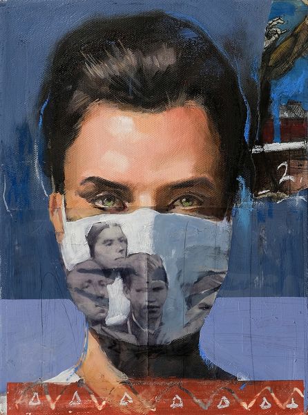 Adam Caldwell made this painting called 'Portrait #1' sometime in the 20th century, and it's really got me thinking about how we patch together meaning from fragments. Caldwell uses a collage-like approach, layering images and textures. The red bar across the eyes is so bold; it's censorship and a symbol of a blocked view. I love how the stars above the face feel like they are part of a projected image, like maybe the face is at the movies, it gives the painting a dreamlike, kind of unreal quality. The texture is uneven, with bits of paper and paint creating a surface that feels both intentional and spontaneous. There's this crowd at the bottom, tiny figures with flags. They seem to be looking up at the face, which looms like a billboard, almost like they are worshipping it. This piece feels like it's in conversation with the work of someone like Peter Kennard, who uses photomontage to create images of political dissent. But where Kennard is direct and angry, Caldwell is more poetic, more about ambiguity and the fractured nature of identity.