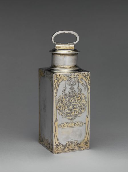 This is a salt-glazed stoneware bottle with a pewter lid, bearing the coat of arms of Prince Maurits. This emblem, prominently displayed, isn't merely decorative; it's a declaration of power and lineage, a visual echo of ancient heraldry. Consider the shield itself, a motif stretching back to antiquity, resonating with protection and authority. It evokes images of Roman legions and medieval knights—symbols of strength passed down through generations. Yet, here, it's not just about military might; it's interwoven with the nascent identity of a nation, the Dutch Republic. The crown atop the shield, a universal symbol of sovereignty, reminds us of its counterparts in royal portraits across Europe, yet its presence here also carries a whisper of defiance. It subtly challenges the established order, reflecting the Dutch struggle for independence. This visual language of power, carefully chosen and rendered, is a potent reminder of the complex dance between tradition and revolution.