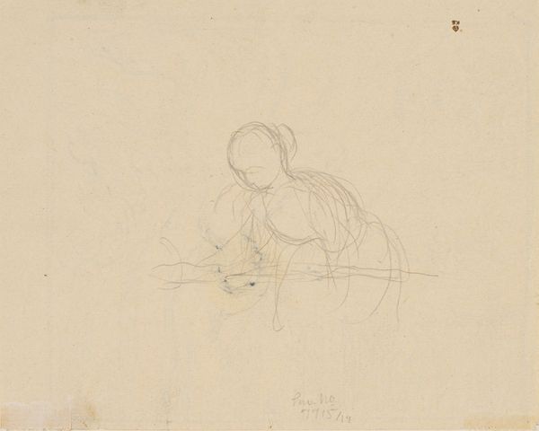 Editor: Here we have C.G. Kratzenstein Stub's drawing, *Psyche betragter den sovende Amor*, created around 1815. It’s a delicate pencil drawing and, I must say, there's something voyeuristic about it, the way Psyche is gazing down at the sleeping Cupid. What can you tell me about it? Curator: It's fascinating how Stub engages with the myth of Cupid and Psyche. He places us at this very charged moment, reflecting on themes of knowledge, desire, and power. Consider how Psyche, a mortal woman, violates a sacred boundary by looking at the god of love. The gaze is active, isn't it? It challenges patriarchal structures by giving Psyche the power of observation and choice, in that moment. What happens when the female gaze meets the masculine ideal? Editor: That's really interesting. I hadn't thought about it in terms of a power dynamic shift. So you’re suggesting it's more than just a simple act of looking; it’s an assertion? Curator: Exactly. Stub subtly challenges the conventional representation of women as passive subjects. Here, Psyche's curiosity and disobedience become a symbolic act, reflective of the evolving social and intellectual roles for women during the Romantic era. Doesn’t it make you consider who controls the narrative, and how classical themes are appropriated and reinterpreted within different socio-political contexts? Editor: I see your point. Looking at it now, it’s like she’s contemplating her own agency. The soft lines almost downplay the gravity of her action. It is kind of radical for its time, right? Curator: Indeed. By focusing on Psyche’s inner turmoil and decision-making, Stub creates a space for questioning societal norms surrounding gender and knowledge, love and duty. Editor: I'll definitely look at Romanticism with new eyes now, considering these subtexts. Thank you. Curator: My pleasure! There is so much to learn by focusing our lenses in this way.