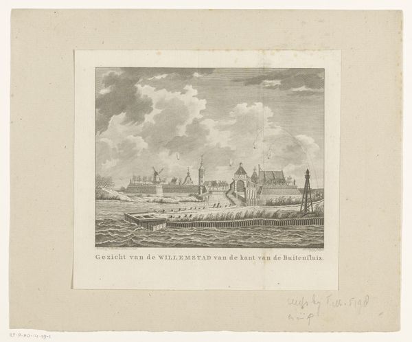 Reinier Vinkeles produced this print, "De twee Blokhuizen in de Amstel," sometime around 1651. Note the symmetrical composition, bisected by the calm waters of the Amstel. This division creates a mirrored effect, drawing our attention to the structures on either side. Vinkeles masterfully uses linear perspective to guide our eye toward the horizon. The subtle gradations of light and shadow give depth to the sky and water. The two blockhouses stand as sentinels, their flags mirroring each other, anchoring the composition, while the windmills and buildings in the distance contribute to the overall spatial recession. Consider how Vinkeles employs a semiotic structure through architecture and landscape. The blockhouses, with their symmetrical design and prominent placement, could symbolize order, control, or the demarcation of territory. This print encapsulates a specific moment, yet through its formal elements, invites us to consider broader themes of space, power, and representation.