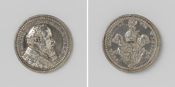 This silver medal of Antoine Perrenot, Cardinal Granvelle, was created by Jacques Jonghelinck, who was active in the 16th century. Granvelle was a prominent figure in the court of the Habsburgs. Portraits like this were used to communicate power and status. Note the details, such as his elaborate beard and the Cardinal’s robes which signify his high rank within the Catholic Church. On the reverse side of the medal is an image of a ship battling against turbulent waves. The ship symbolizes Granvelle’s ability to navigate the treacherous waters of European politics during the Reformation. The medal reflects the cultural and political milieu of the 16th century and speaks to the intersection of religious authority, political power, and personal identity. By possessing this medal, one could align themselves with the cardinal's influence and partake in his symbolic identity. The medal acts as a form of social currency, displaying allegiance and aspiration within a hierarchical society.