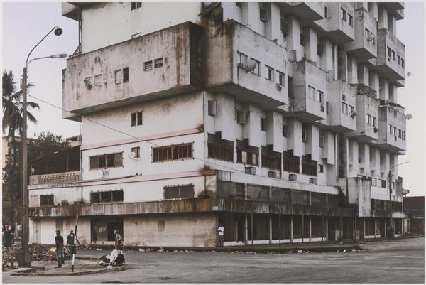 Editor: This photograph, "Avenue Bagamoyo, Beira, Mozambique" by Guy Tillim, really evokes a sense of urban decay. What’s striking to me is the contrast between the imposing architecture and its weathered state. What social or political factors do you think contributed to the scene depicted here? Curator: Well, consider Mozambique's history, particularly its struggle for independence and subsequent civil war. Tillim's image captures the lingering effects of conflict and political instability on urban landscapes. How do you think the artist uses the building's architecture to convey these ideas? Editor: I see how the grandeur of the buildings is undermined by the visible neglect, almost like a commentary on unrealized potential. It makes me wonder about the public role of art in documenting such realities. Curator: Exactly. Tillim’s work forces us to confront the politics of imagery and the stories behind seemingly static scenes. It prompts us to question the relationship between history, power, and representation. Editor: I hadn’t considered the historical context so directly, but it certainly deepens my understanding of the photograph. Thanks! Curator: My pleasure. It’s crucial to recognize art's role in reflecting and shaping public perception.
