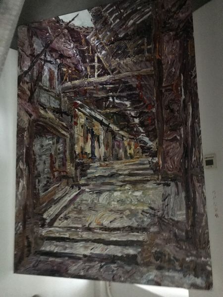 Here we see a striking, large-scale installation made from found wooden chairs by the Japanese artist Tadashi Kawamata. The chairs are stacked and interwoven, creating a dense, cavernous structure, a kind of architectural folly. The overall composition overwhelms the viewer. It's as though the chairs have taken on a life of their own, escaping their usual function to form this imposing mass. Light filters through the gaps, adding a sense of depth, illuminating this chaotic yet strangely ordered assemblage. The chairs themselves, as everyday objects, carry connotations of domesticity, rest, and social gatherings. But here, massed together, they destabilize these associations, transforming into something more monumental and unsettling. Kawamata's use of repetition and accumulation speaks to poststructuralist ideas about how meaning is constructed through difference and repetition. The individual chair loses its singularity, becoming part of a larger system. This challenges our conventional understanding of objects and their purpose. Note the formal tension between order and chaos, mass and void; it’s a potent reminder that art can disrupt our perceptions, prompting us to rethink the familiar.