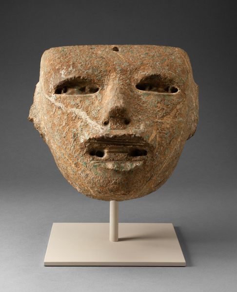Editor: This is a wooden mask from the Makonde people, circa 1960s, now housed at the Minneapolis Institute of Art. It feels so incredibly present, doesn’t it? The expression is almost lifelike. What strikes you most about this piece? Curator: What captivates me is how this mask, born from a specific cultural context, continues to speak across time and space. Look closely – do you see the fine scarification patterns etched into the wood? Editor: Yes, I do. Almost like little repeating triangles. Curator: Precisely! These aren’t merely decorative; they’re visual echoes of identity, status, and perhaps even spiritual roles within the Makonde community. Masks like this weren’t passive objects; they were activated through dance and ritual. Can you imagine the power these symbols would hold? Editor: So, the meaning isn't static. It changes with the context, with the wearer... I never considered that. The mouth being slightly open almost suggests speaking or chanting... Curator: Exactly! And notice the serene, almost knowing, expression in the eyes. It suggests a connection to something beyond the material world, something enduring within the culture. Does the work evoke a sense of familiarity? Perhaps, a shared humanity? Editor: Definitely a sense of familiarity, almost as if I recognize this person. I'll certainly view masks differently going forward. Curator: The mask serves as a poignant reminder of our shared visual language. The Makonde have left us a memory, shaped in wood.