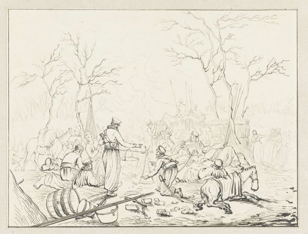 Pieter de Goeje made this print, "Boerenerf met koeien," which translates to "Farmyard with Cows," sometime in the first half of the 19th century using etching. The image evokes the visual language of Dutch Golden Age painting, and its focus on rural life resonates with broader cultural debates from this period. The Netherlands in the 19th century was undergoing significant social and economic changes with the rise of industrialization and urbanization. Artists and intellectuals often looked back to the countryside as a source of national identity and moral virtue, as the growth of cities increasingly separated people from the sources of food. The image romanticizes agricultural life, but such images can reveal anxieties about a changing world. To fully understand a print like this, we can delve into sources such as agricultural journals, economic statistics, and even literature to understand how images of rural life played a role in shaping national identity during a period of rapid transformation.