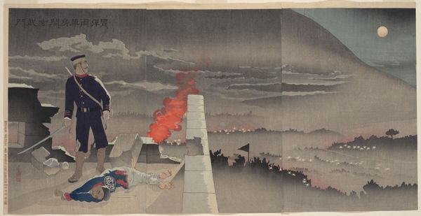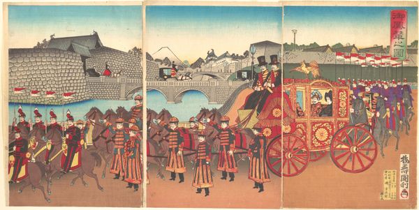 This print was made by Tsukioka Yoshitoshi, and it's called "Maneuvers by Three Categories of French and English Soldiers." It’s a woodblock print, a process requiring a sharp knife to carve an image into wood, which is then inked and printed. See the stark lines and flat planes of color? These are characteristic of the medium. Woodblock printing was a commercial process, allowing for the widespread distribution of images. The astonishing level of detail was achieved through a division of labor. In the late 19th century, prints like these often depicted Western subjects. The choice of subject matter speaks to Japan’s engagement with the world stage. The mass production of these prints also reflects the industrializing forces at work in Japanese society at the time, as well as the country’s growing military ambitions. So, next time you look at a print, think about the labor involved, the social context, and the way that the materials and processes used can shape our understanding of history.